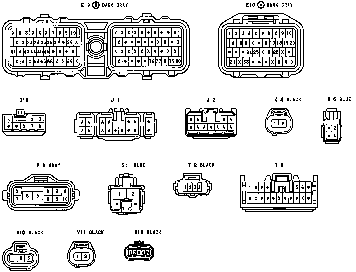 Electronic Controlled Transmission And A/T Indicator Connector Views (2JZ-GE):