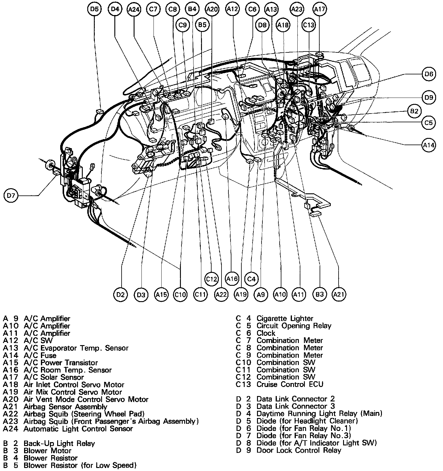 Parts Location Instrument Panel (Column Shift):