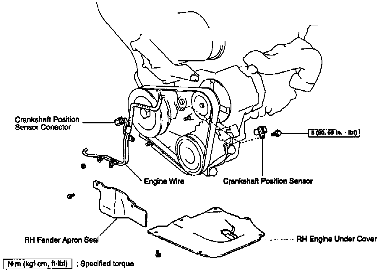 The Crankshaft Position Sensor is mounted on the front of the engine behind the front pulley.