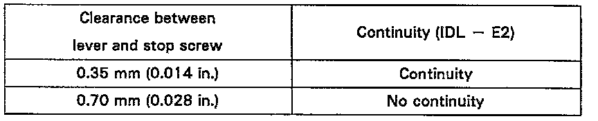 - Insert a thickness gauge between the throttle stop screw and stop lever