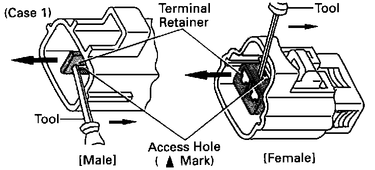 Type which cannot be pulled as far as Power Lock insert the tool straight into the access hole of terminal retainer as shown.