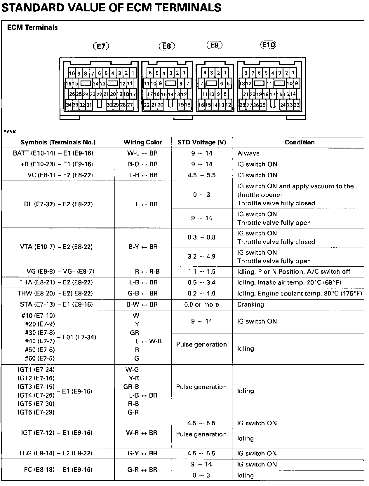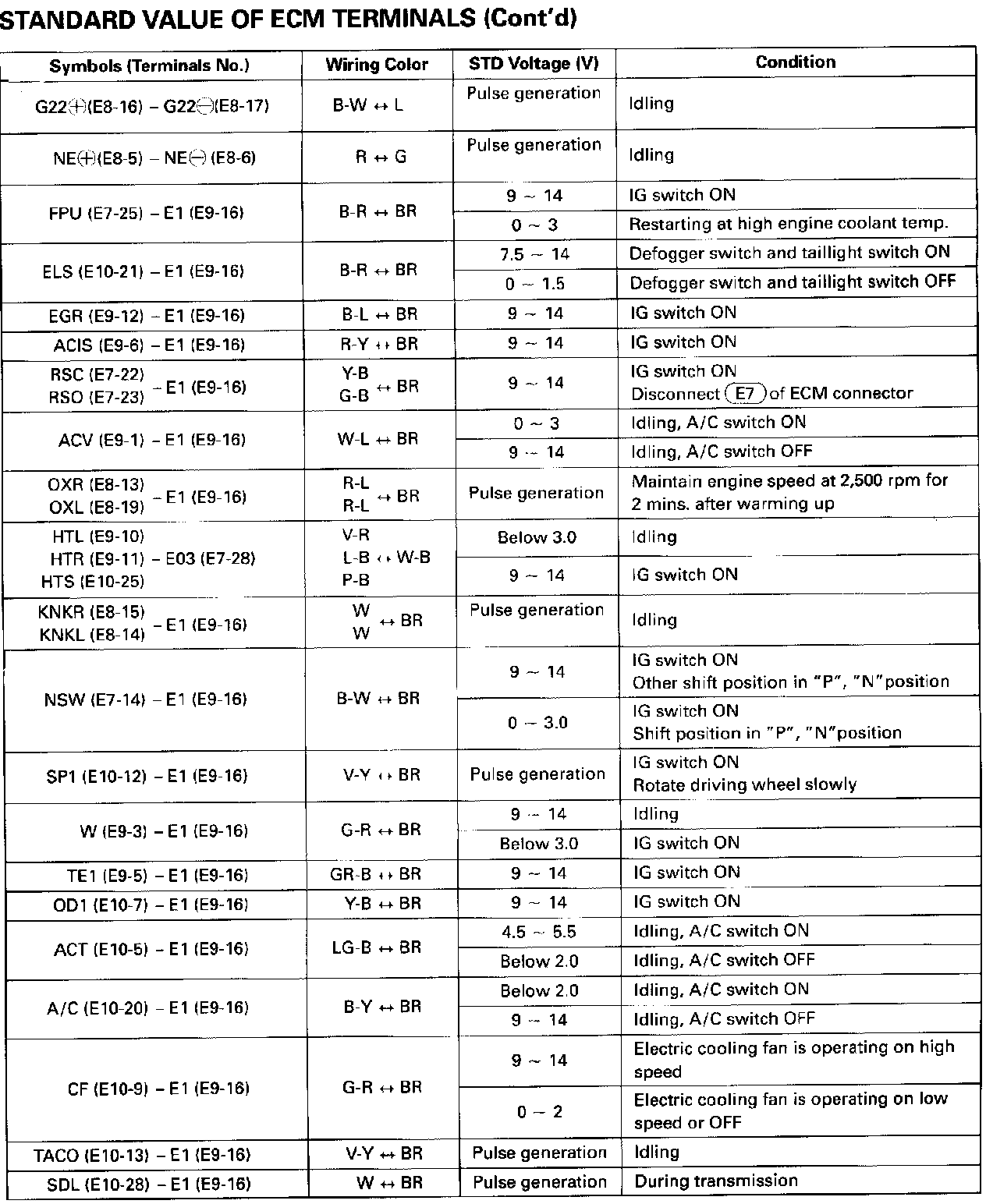 Control Module Pinout Values