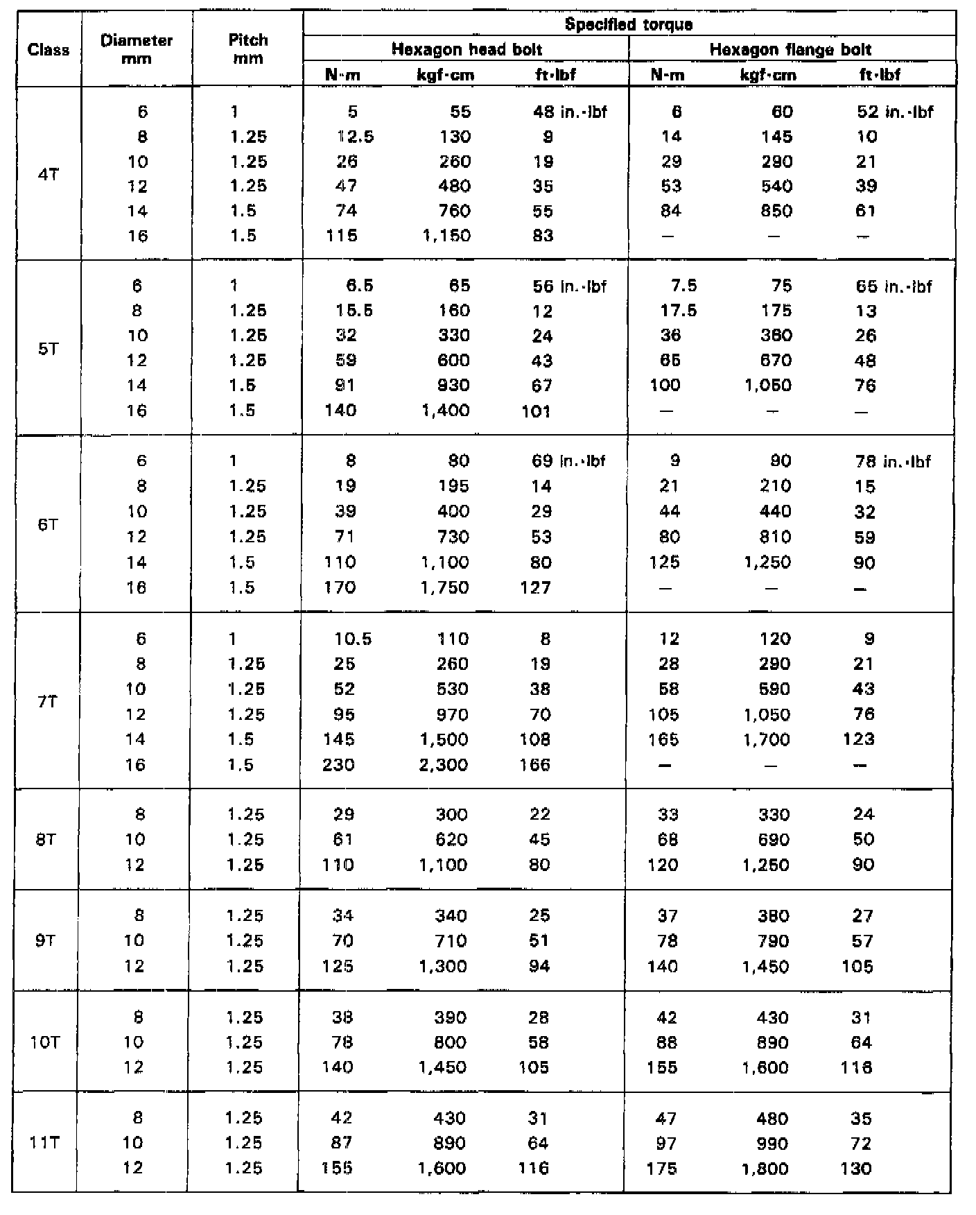 Specified Torque For Standard Bolts