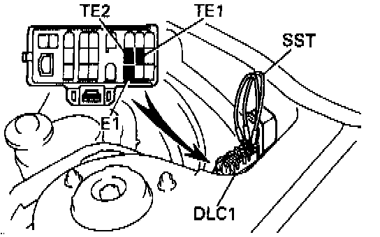 The data link connector, DLC1, is located in the engine compartment, at the rear of the left inner fender liner.