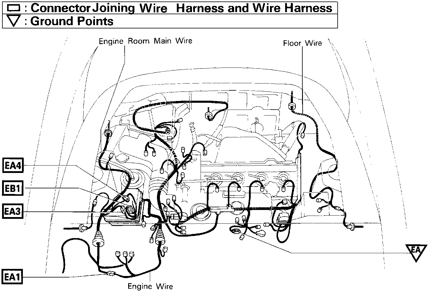 Location Of Connector Joining Wire Harness And Wire Harness Ground Points (Fig 28):