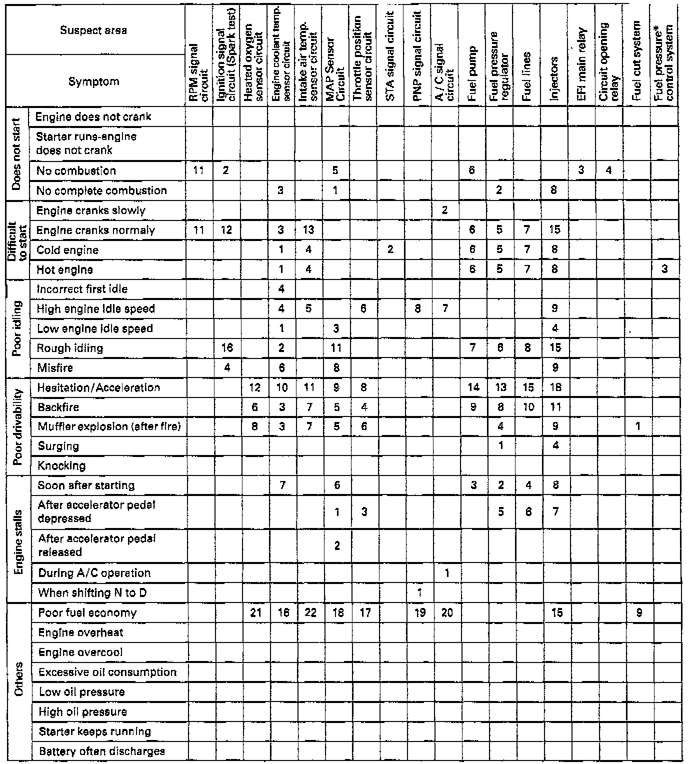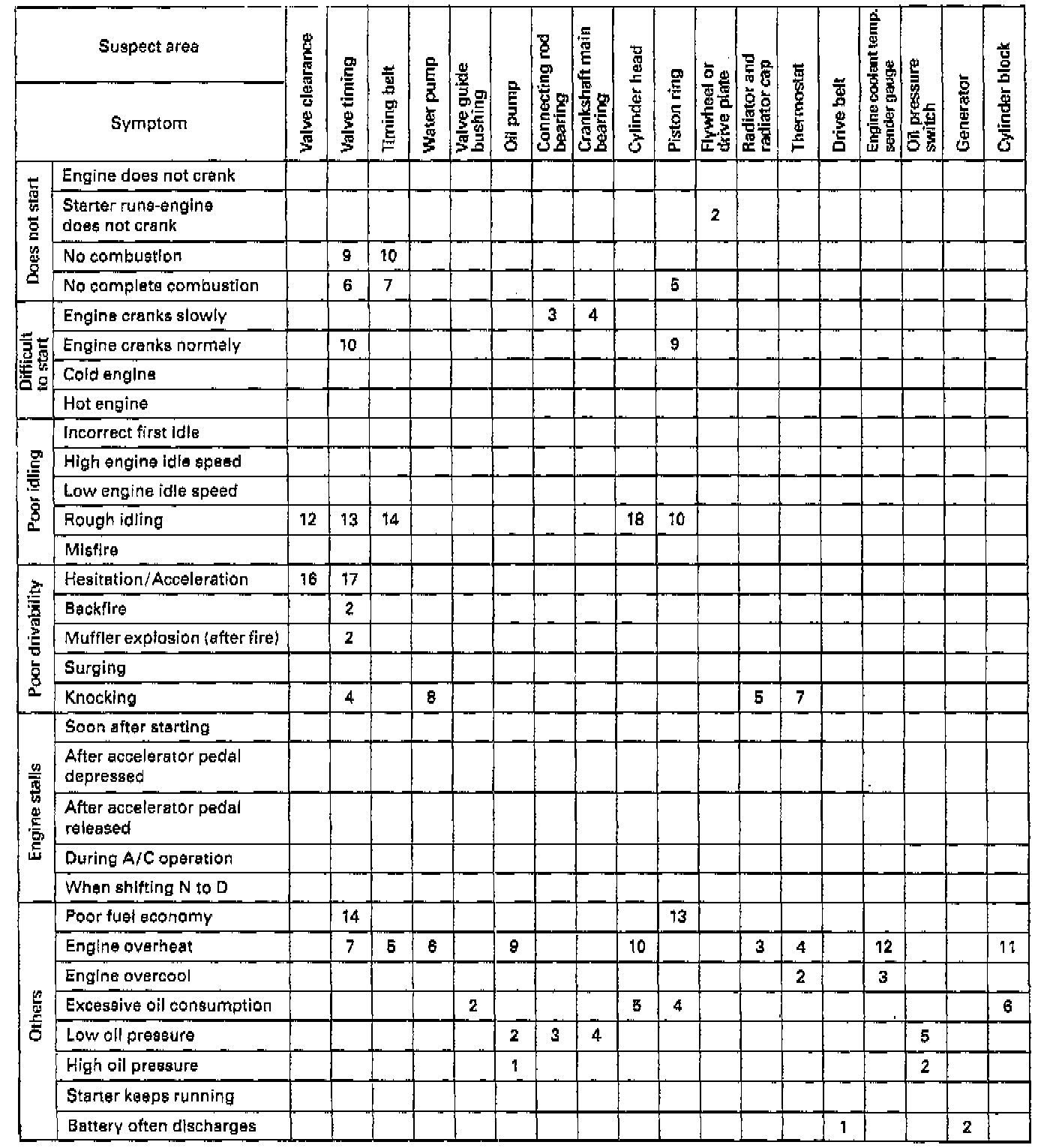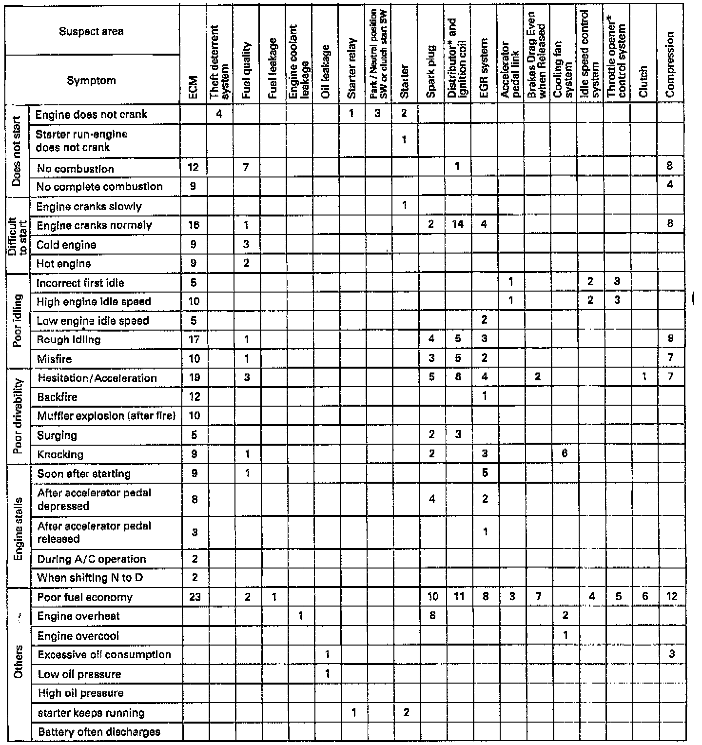 Use the table below to help you find the cause of the problem. The numbers indicate the priority of the likely cause of the problem. Check and replace each part in the order shown.Matrix Chart Of Problem Symptoms ( Part 1 Of 3 ):