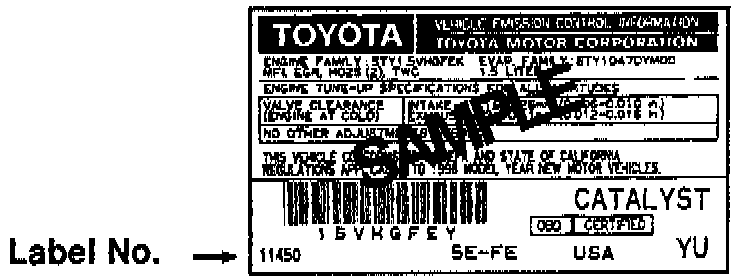 California/50 State certified Vehicle Emission Control Labels cannot be ordered using normal parts ordering procedures.
