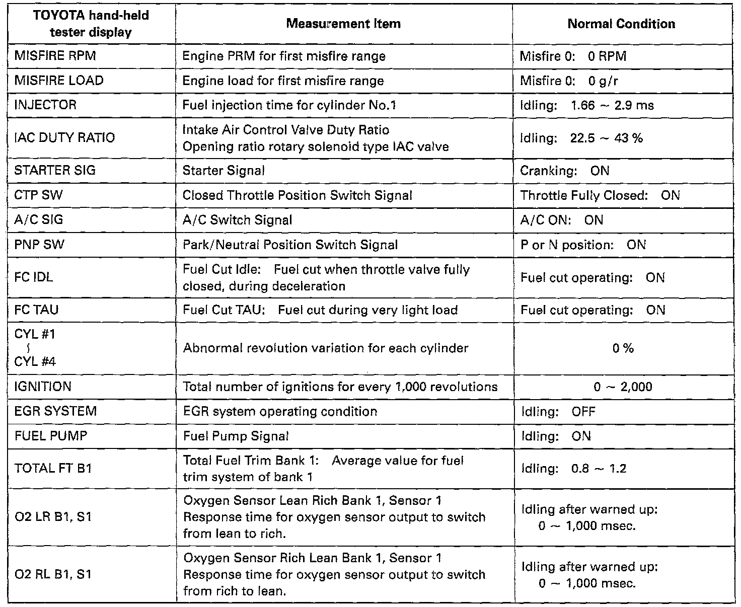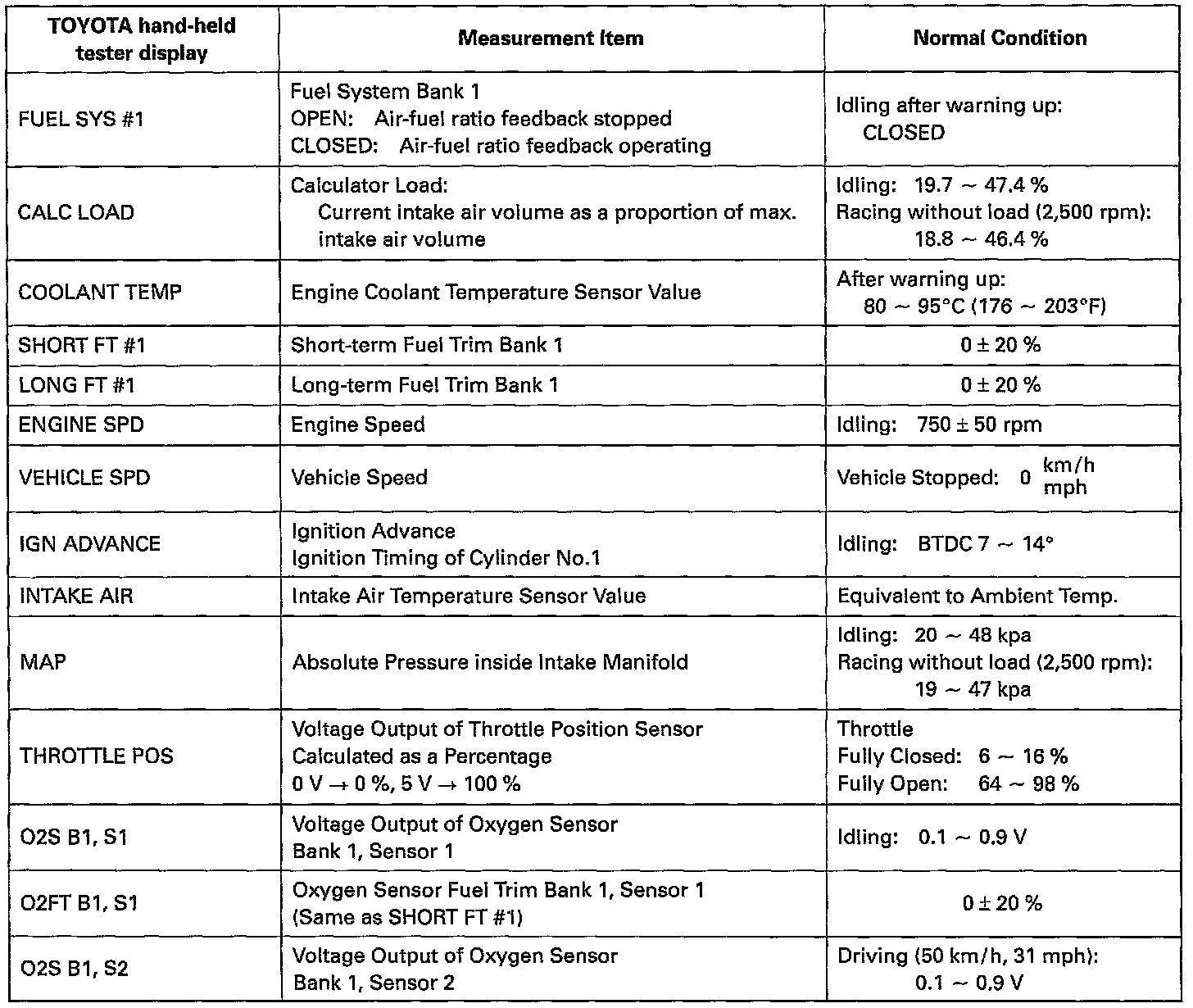 Engine Operating Conditions