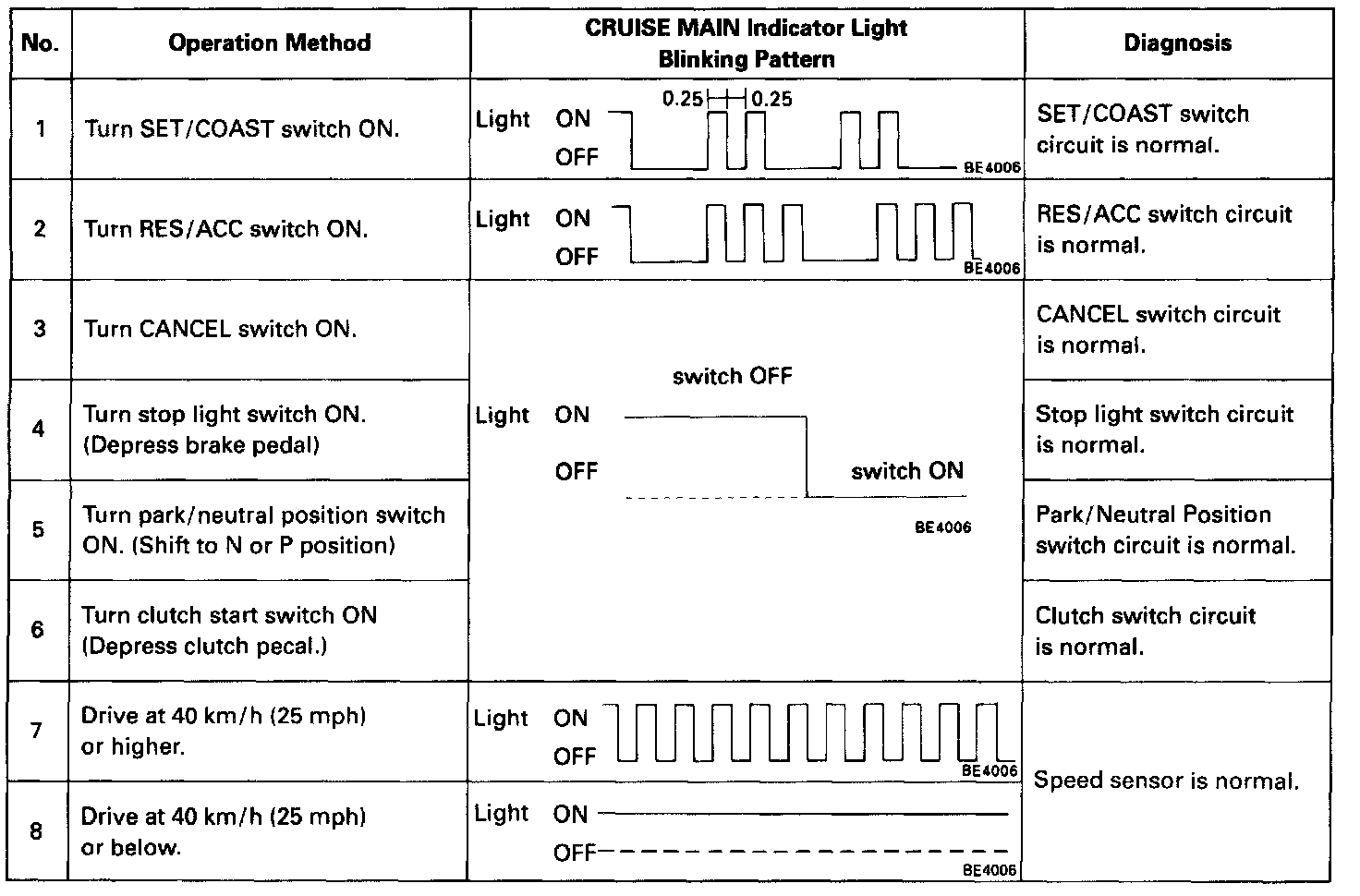 7. Read the blinking pattern of the CRUISE MAIN indicator light.