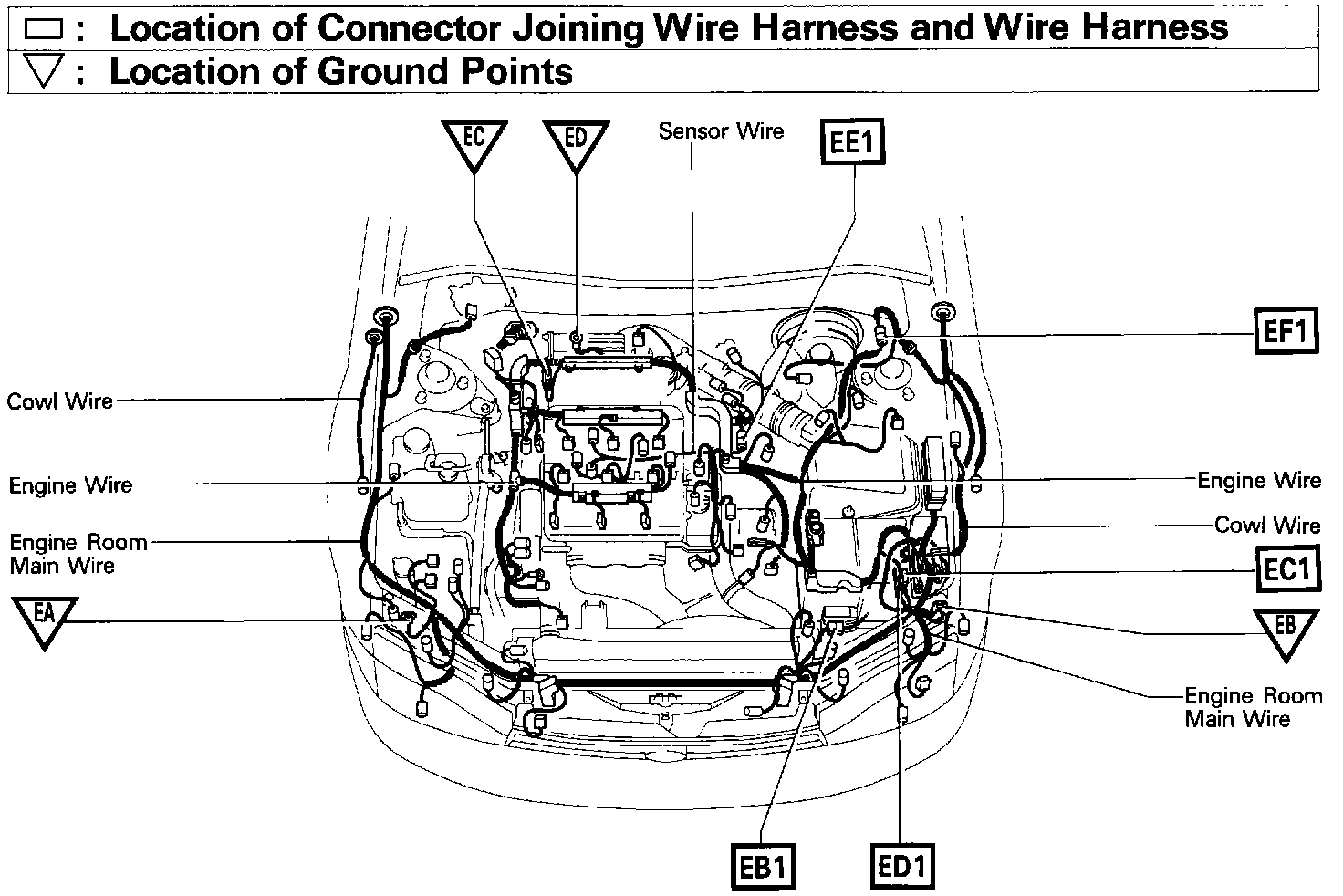 Location Of Connector Joining Wire Harness And Wire Harness Ground Points (Fig 38):