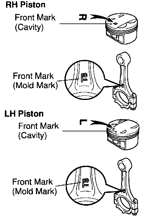 (d) Align the front marks of the piston and connecting rod, and push in the piston pin with your thumb.