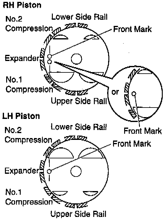 NOTE: Be sure that end gap of the snap ring is not aligns with the pin hole cutout portion of the piston.