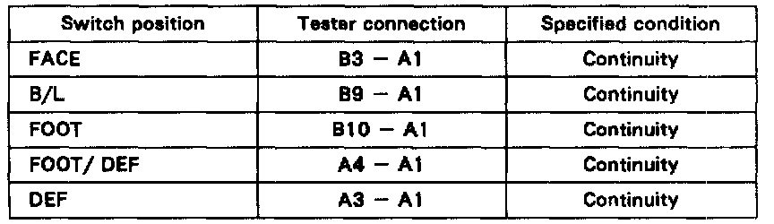 If continuity is not as specified. replace the A/C control lower panel.