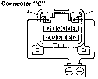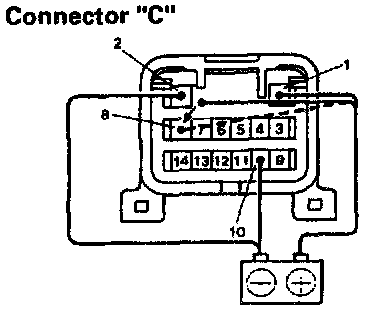 a. Connect the positive (+) lead from the battery to terminal C-1 and the negative (-) lead to terminal C-2 and C-10.