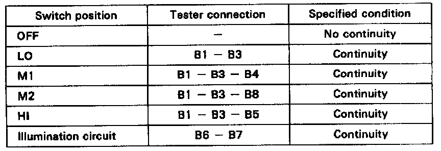 1. INSPECT BLOWER SPEED CONTROL SWITCH CONTINUITY