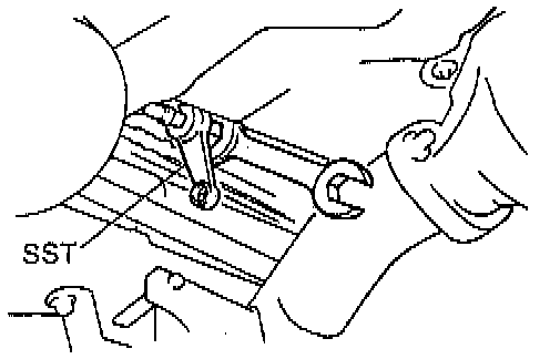 b. Connect SST 09640 - 10010 (09641 - 01010, 09641 - 01030, 09641 -01060) over a new gasket, as shown in image.