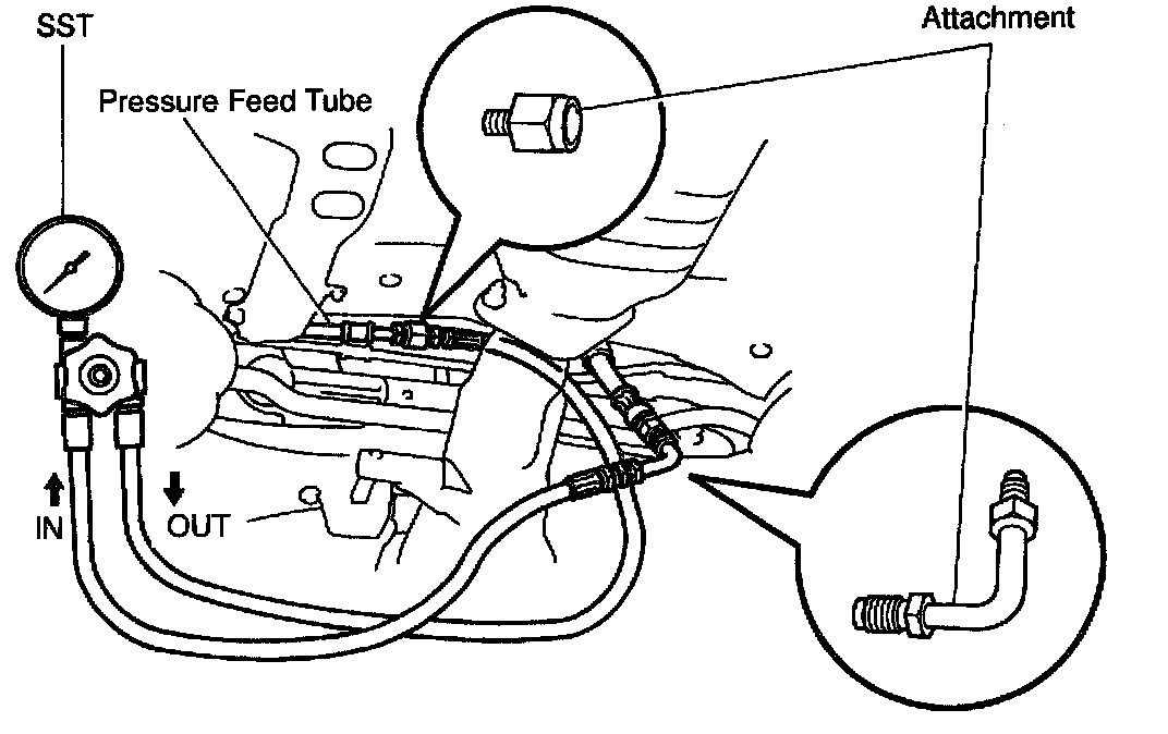 7. Disconnect the SST 09631-22020, then connect the pressure feed tube, torque to 20 Nm (15 ft. lbs.).