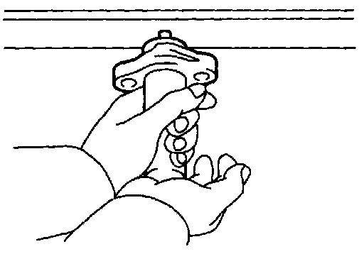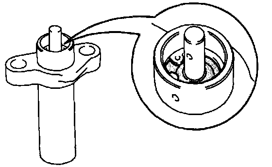 (b) Hold the tensioner with both hands and push the push rod strongly as shown to check that it doesn't move. If the push rod moves, replace the tensioner.