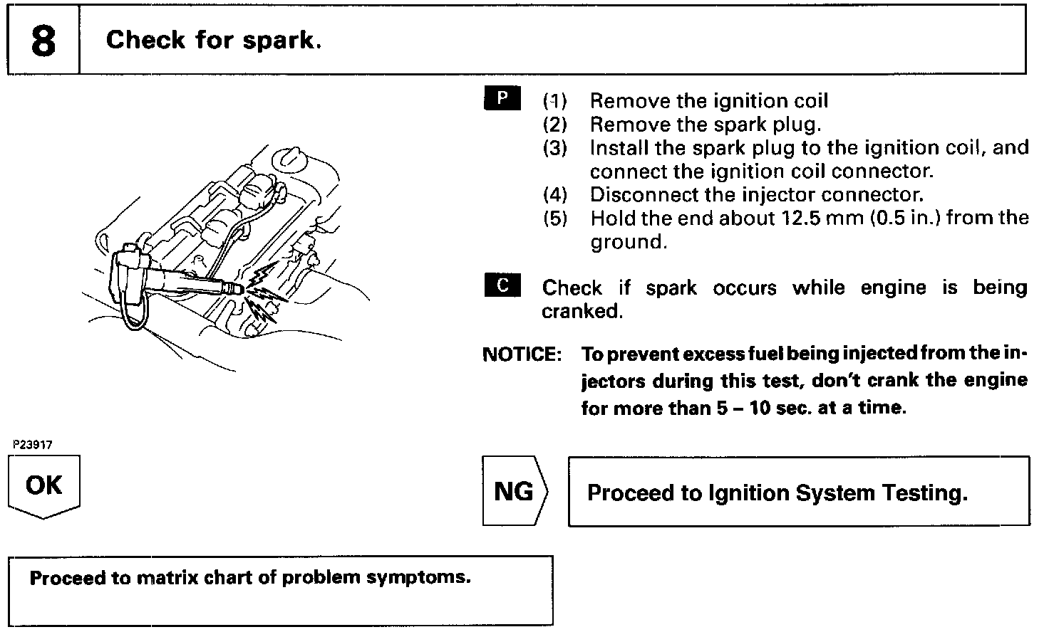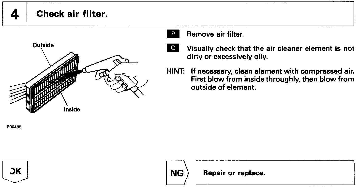 In many cases by carrying out the basic engine check shown in the following flow chart, the location causing the problem can be found quickly and efficiently. Therefore, use of this check is essential in engine troubleshooting.