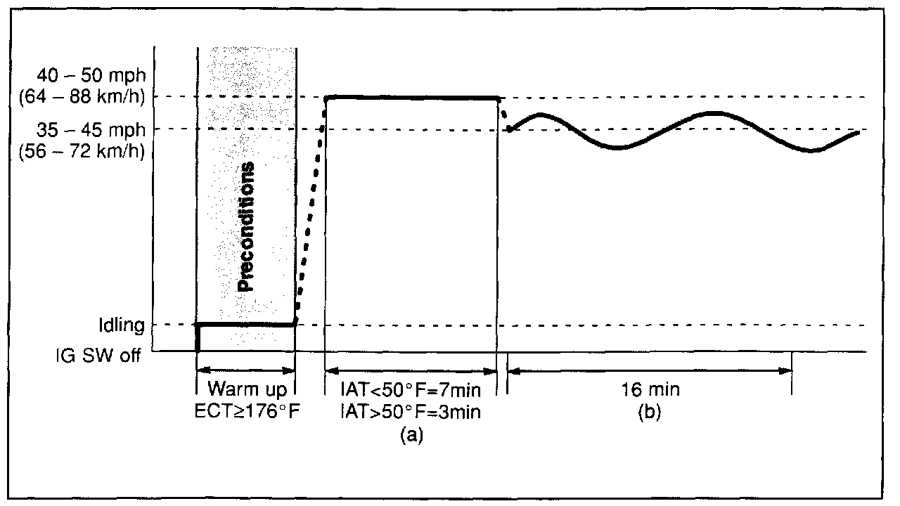 ^ If IAT (Intake Air) was less than 50°F (10°C) when the engine was started, drive for 7 minutes.