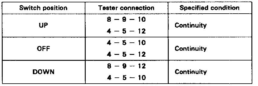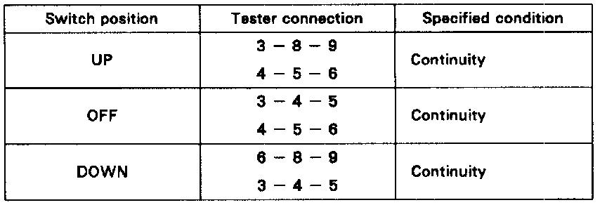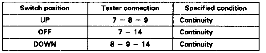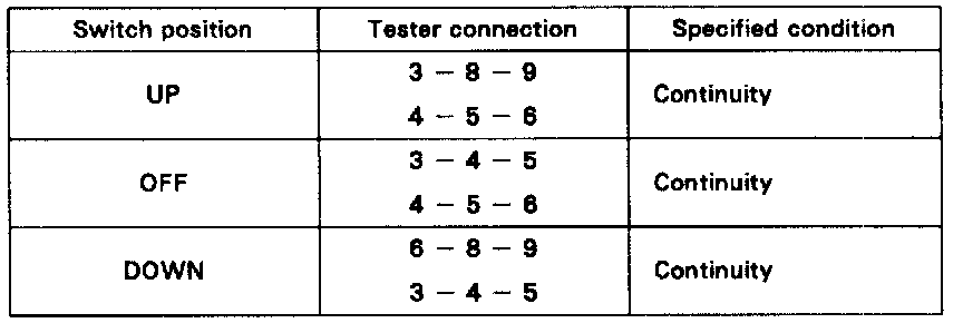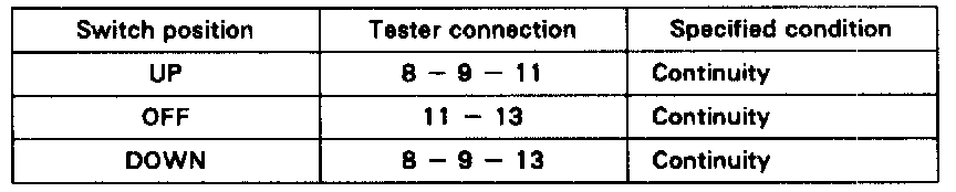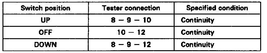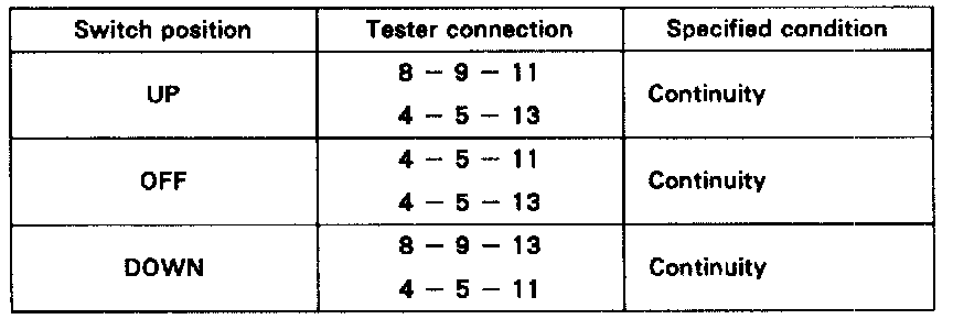 If continuity is not as specified, replace the master switch.
