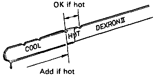 - Only use the COOL range on the dipstick as a rough reference when the fluid is replaced or the engine does not run.