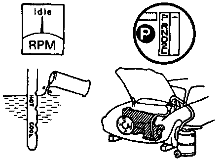 (e) With the engine idling, check the fluid level. Add fluid up to the COOL level on the dipstick.