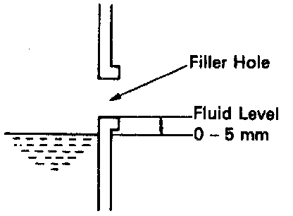 (d) Add new fluid until it begins to run out of the filler hole.