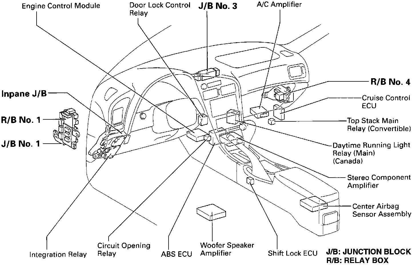 Locations-R/B No.2, J/B No.2 Engine Compartment Left (Fig 26):