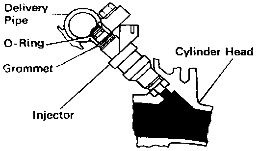 4. Install the injector in the delivery pipe and cylinder head as shown in the illustration.