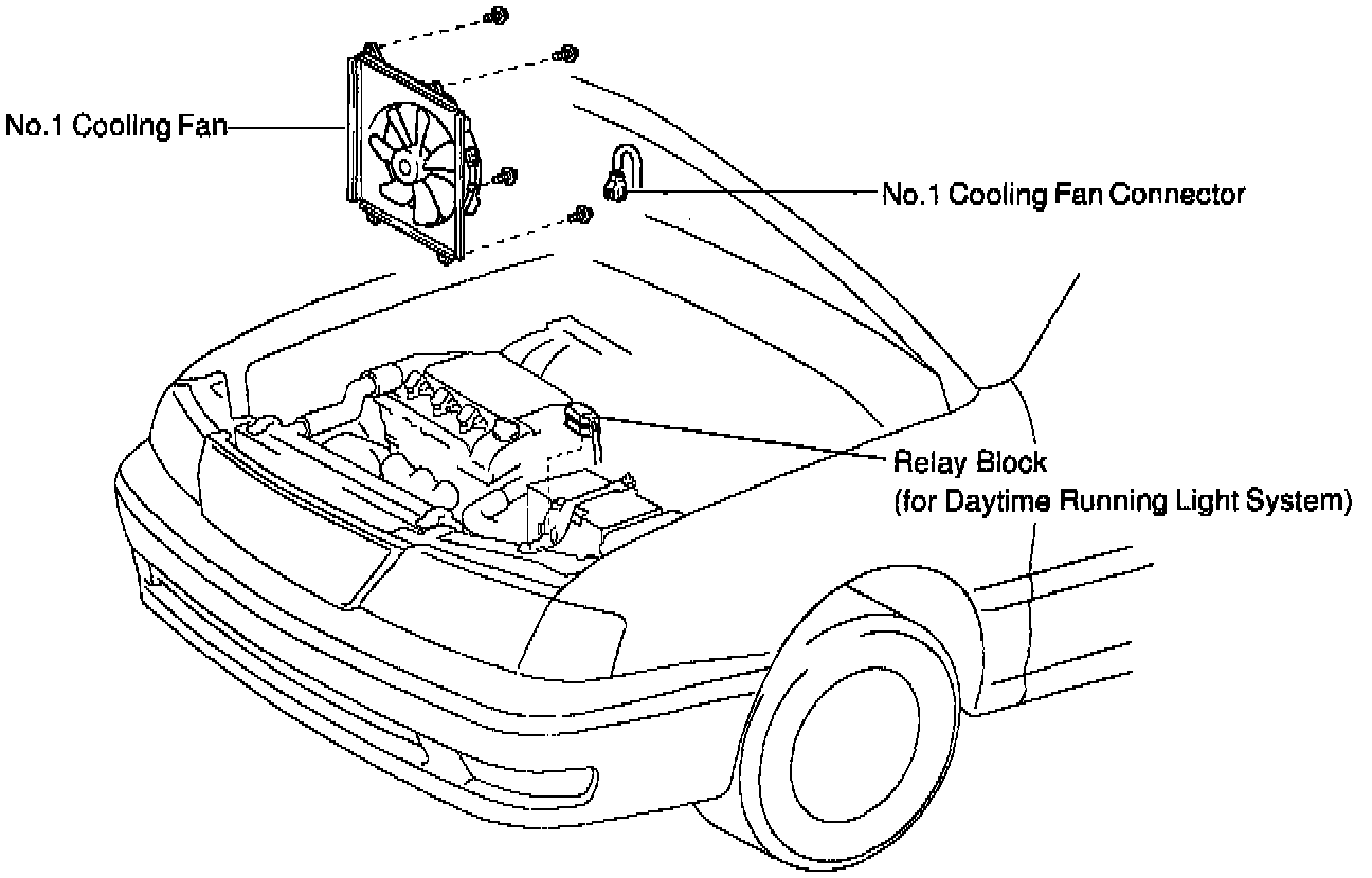 No.1 COOLING FAN, No.1 COOLING FAN CONNECTOR AND RELAY BLOCK