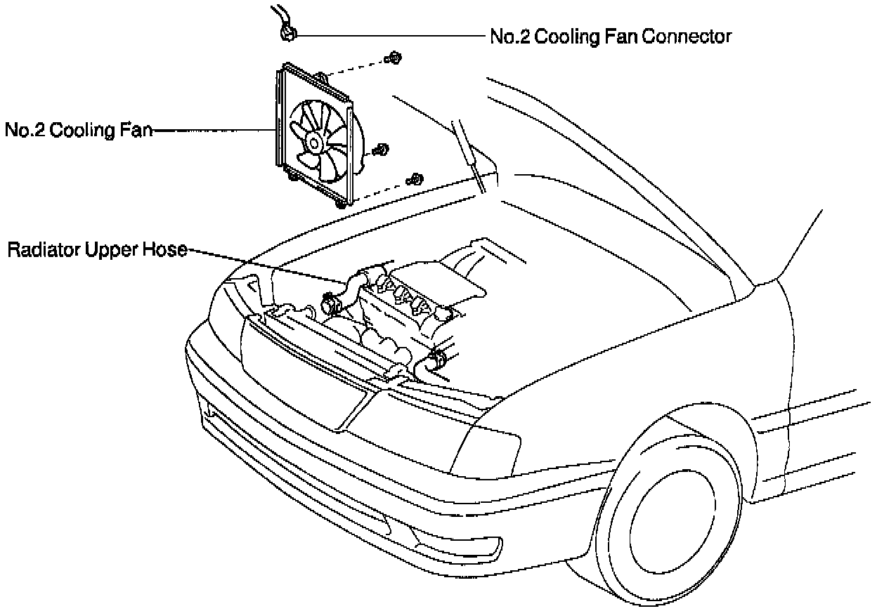 No.2 COOLING FAN, No.2 COOLING FAN CONNECTOR AND RADIATOR UPPER HOSE