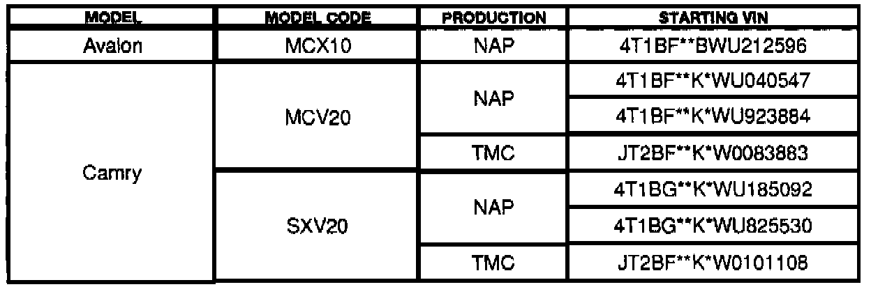 On some non-immobilizer equipped 1998 Camry and Avalon models, the ECM used is the same as for Immobilizer equipped vehicles. For these models, it is necessary to register a "without engine Immobilize" code to prevent permanent failure of the ECM.
