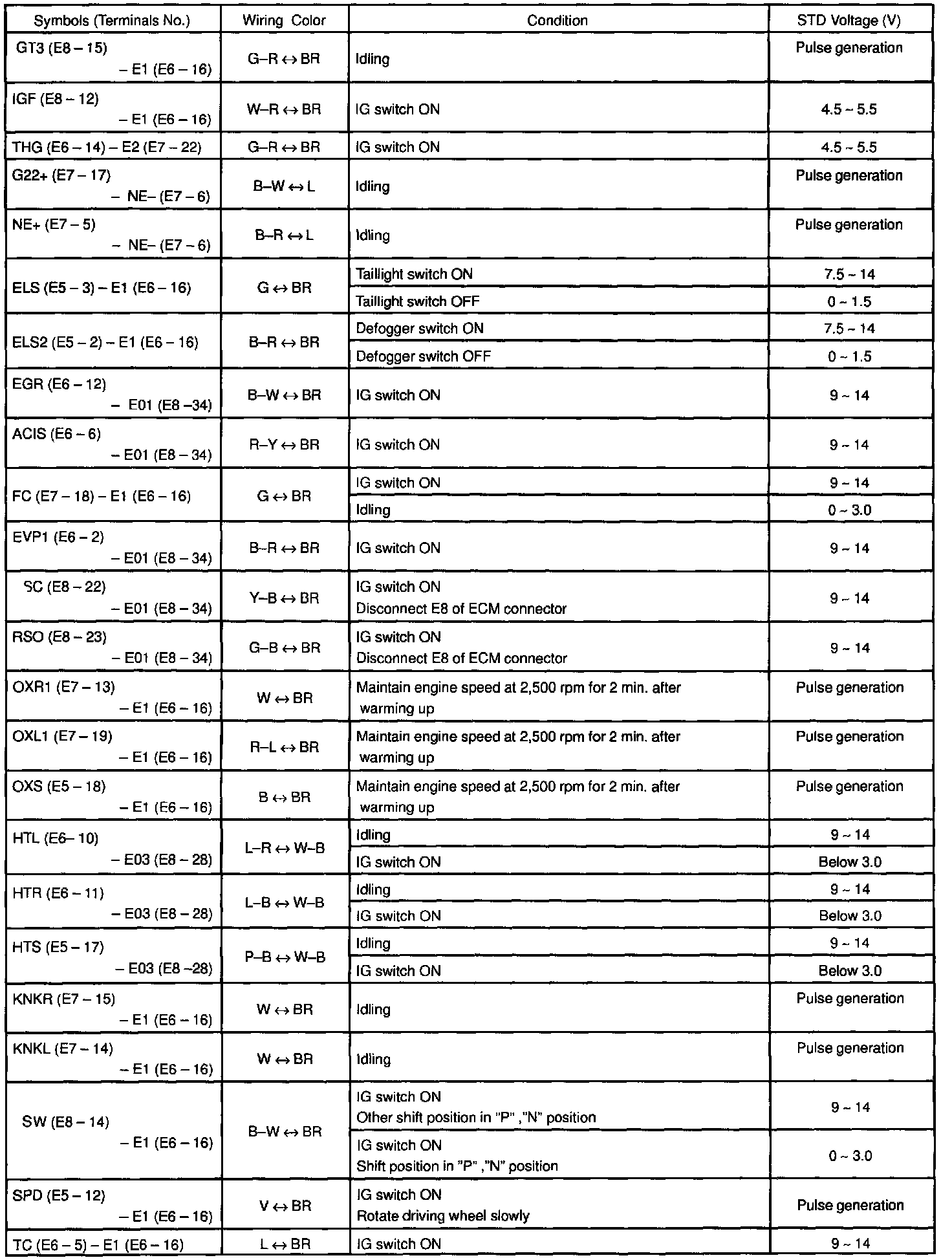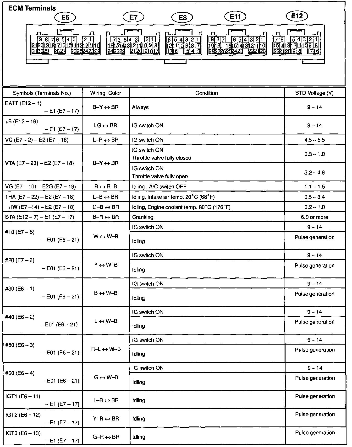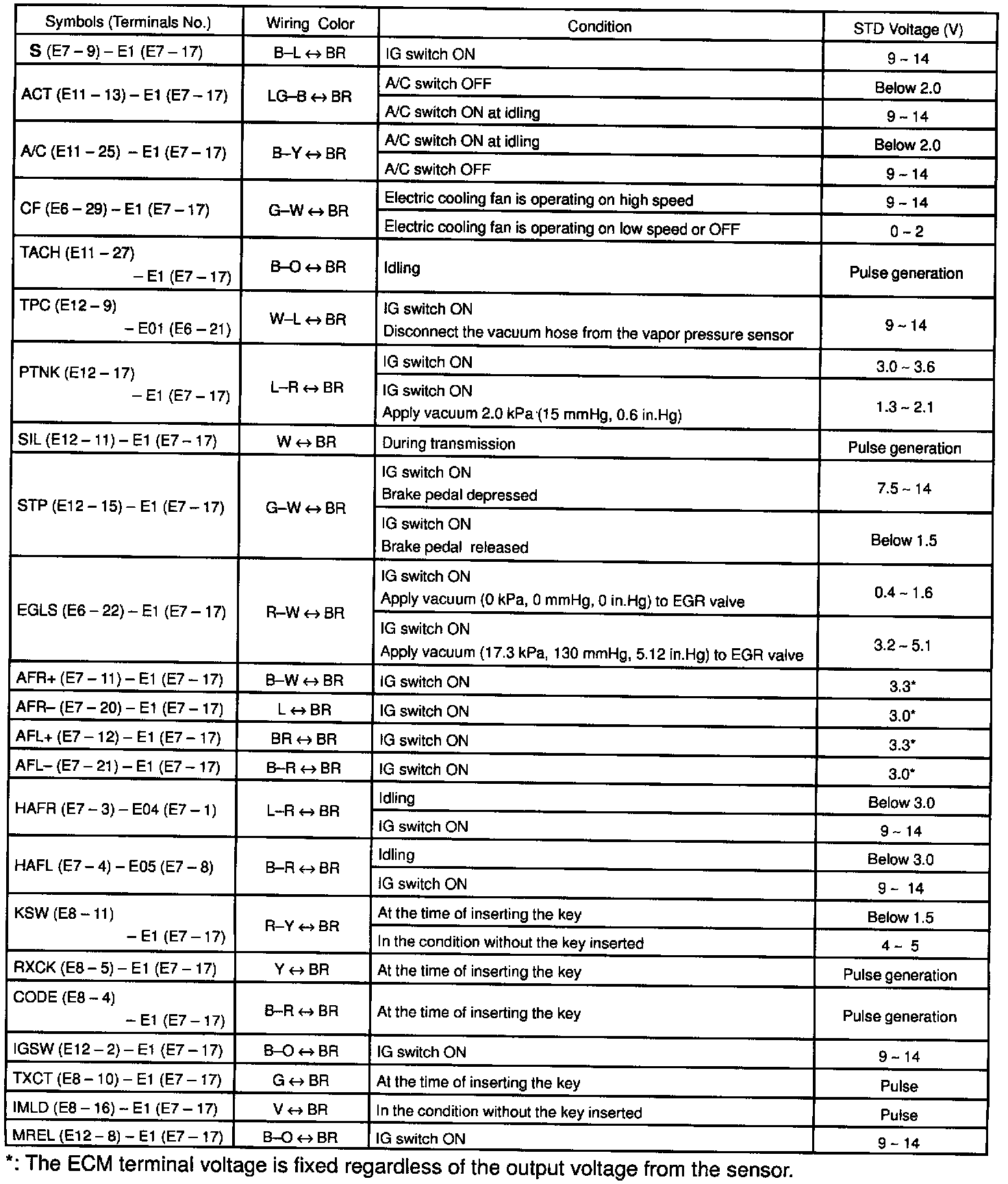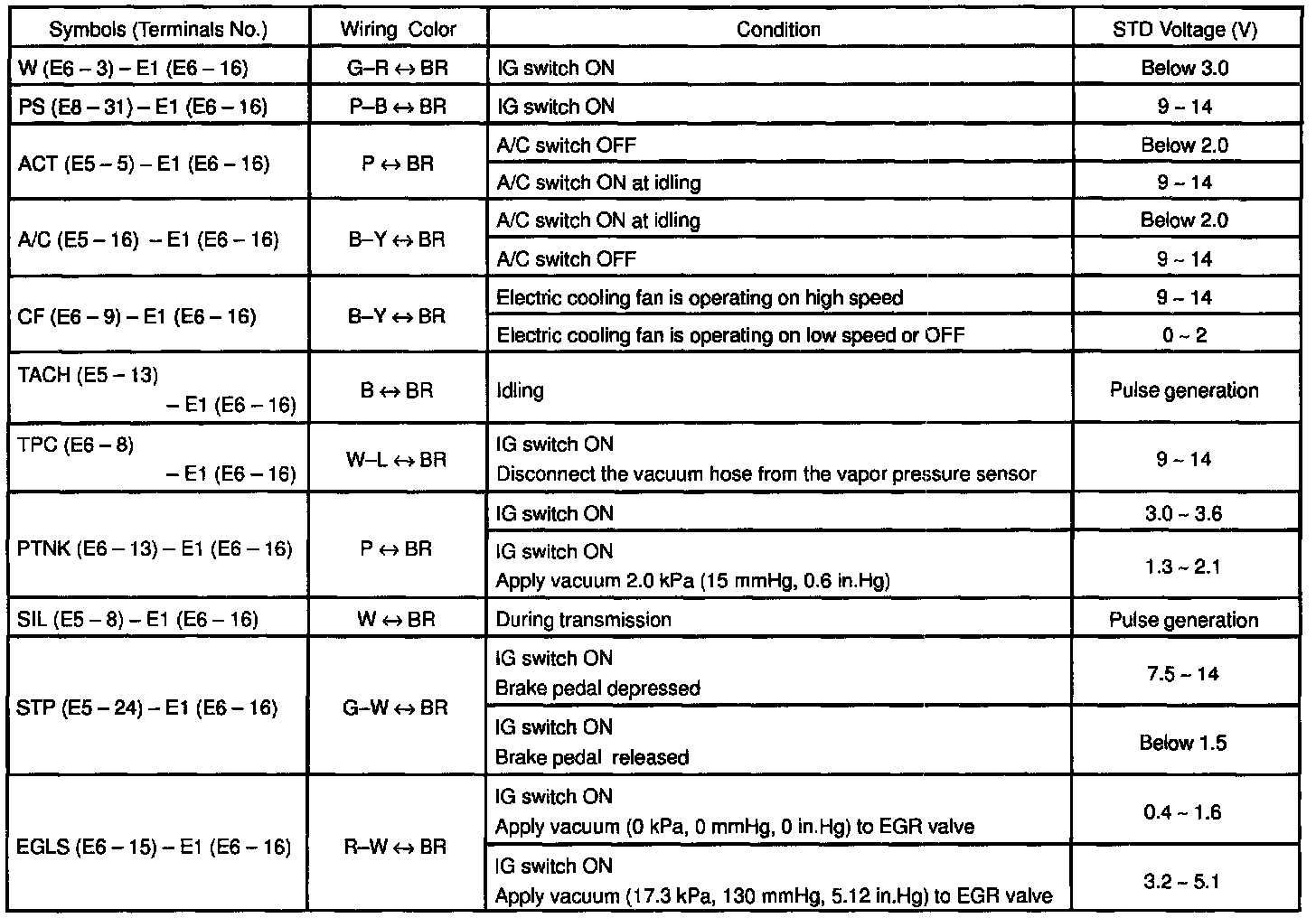 Control Module Pinout Values