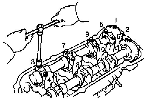 Exhaust Camshaft Bearing Cap Removal Sequence: LH Cylinder Head: