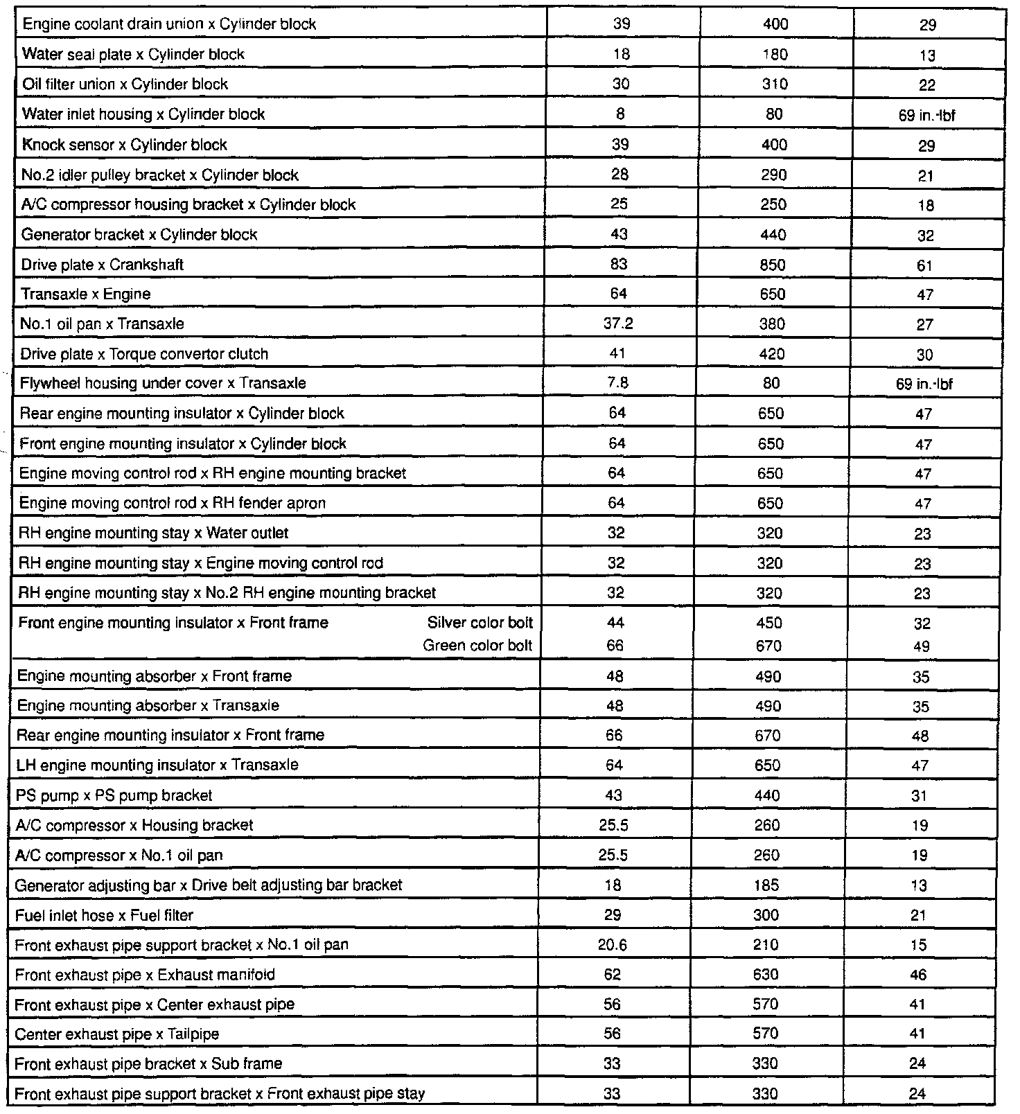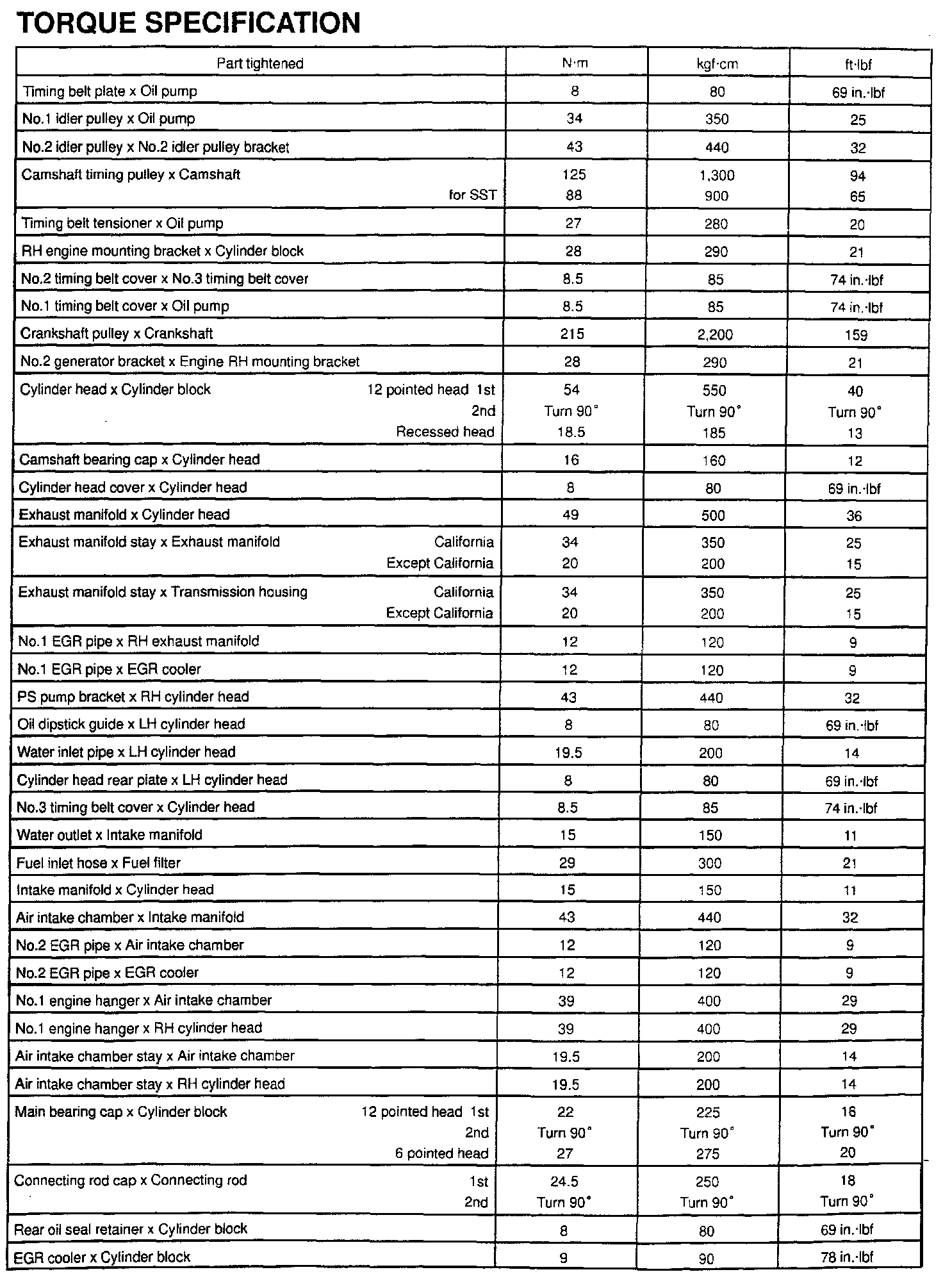 General Torque Specifications