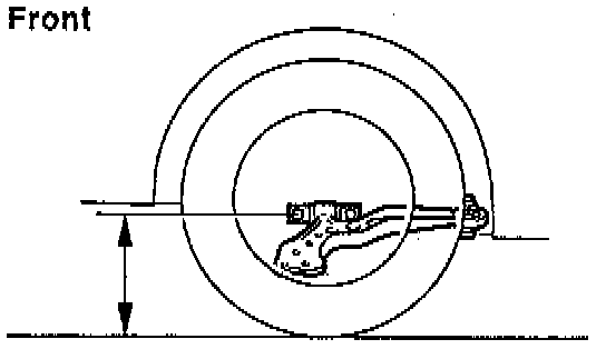 b. Rear measuring point; measure from the ground to the center of the front side strut rod mounting bolt.