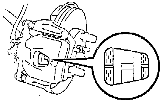 Check the pad thickness through the caliper inspection hole and replace the pads if it is not within the specification.