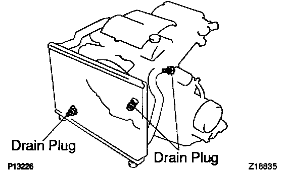 b. Loosen the radiator drain plug and engine drain plugs, and drain the coolant.