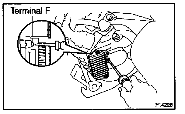 ^ With terminal F grounded, start the engine and check the voltmeter reading of terminal B.