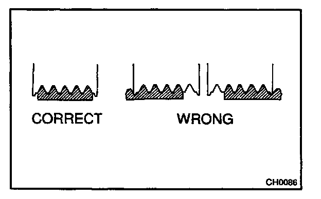 ^ After installing a new belt, run the engine for about 5 minutes and recheck the belt tension.