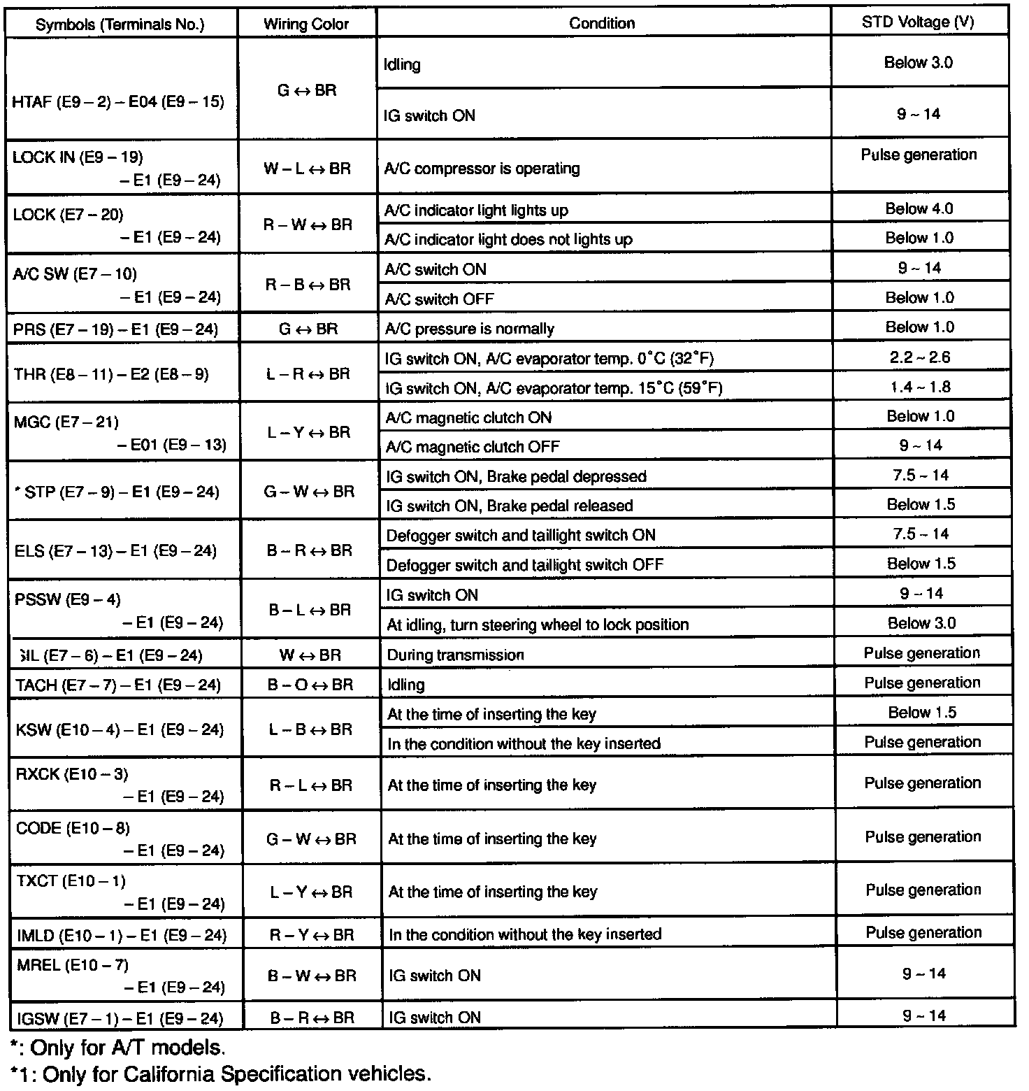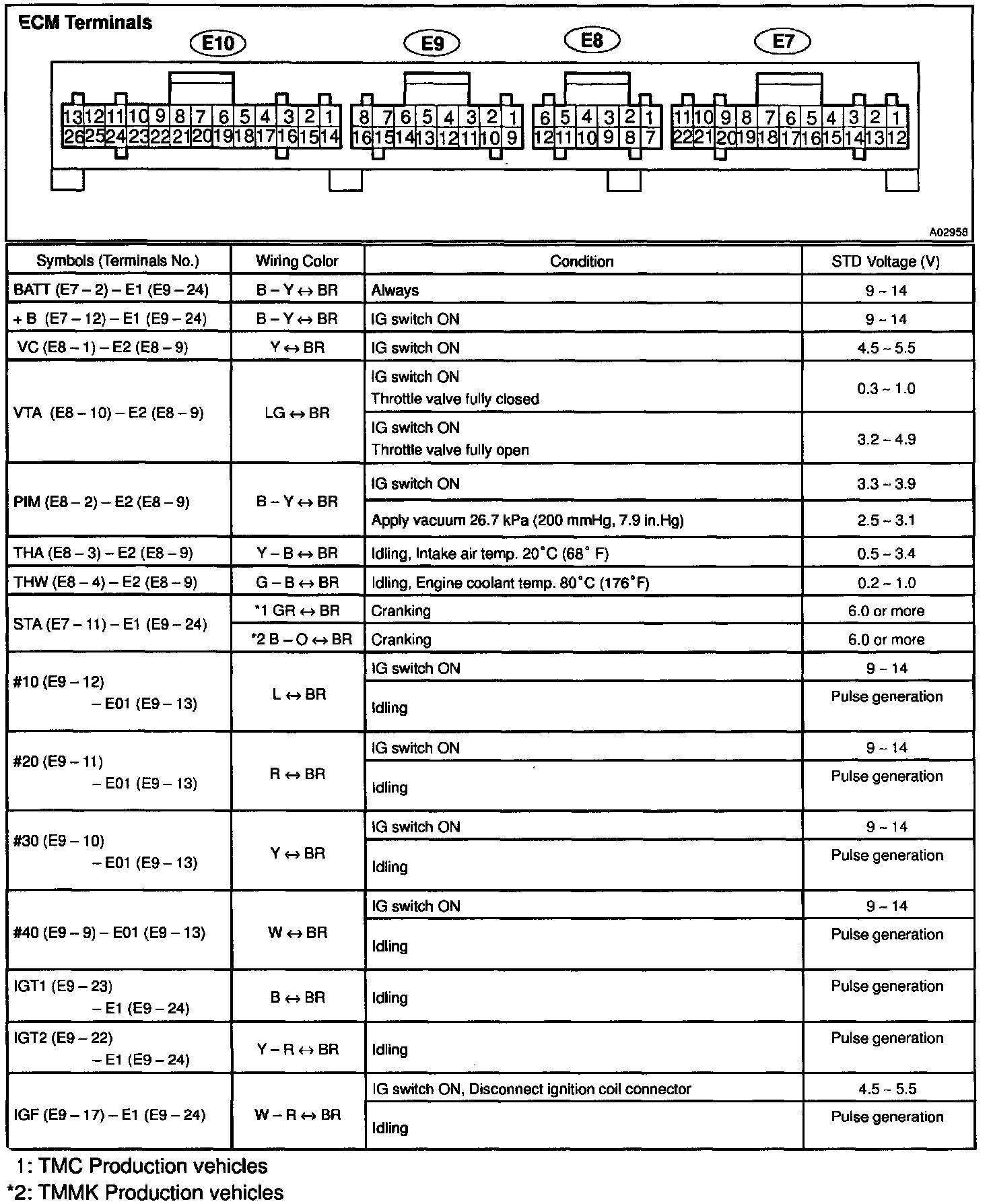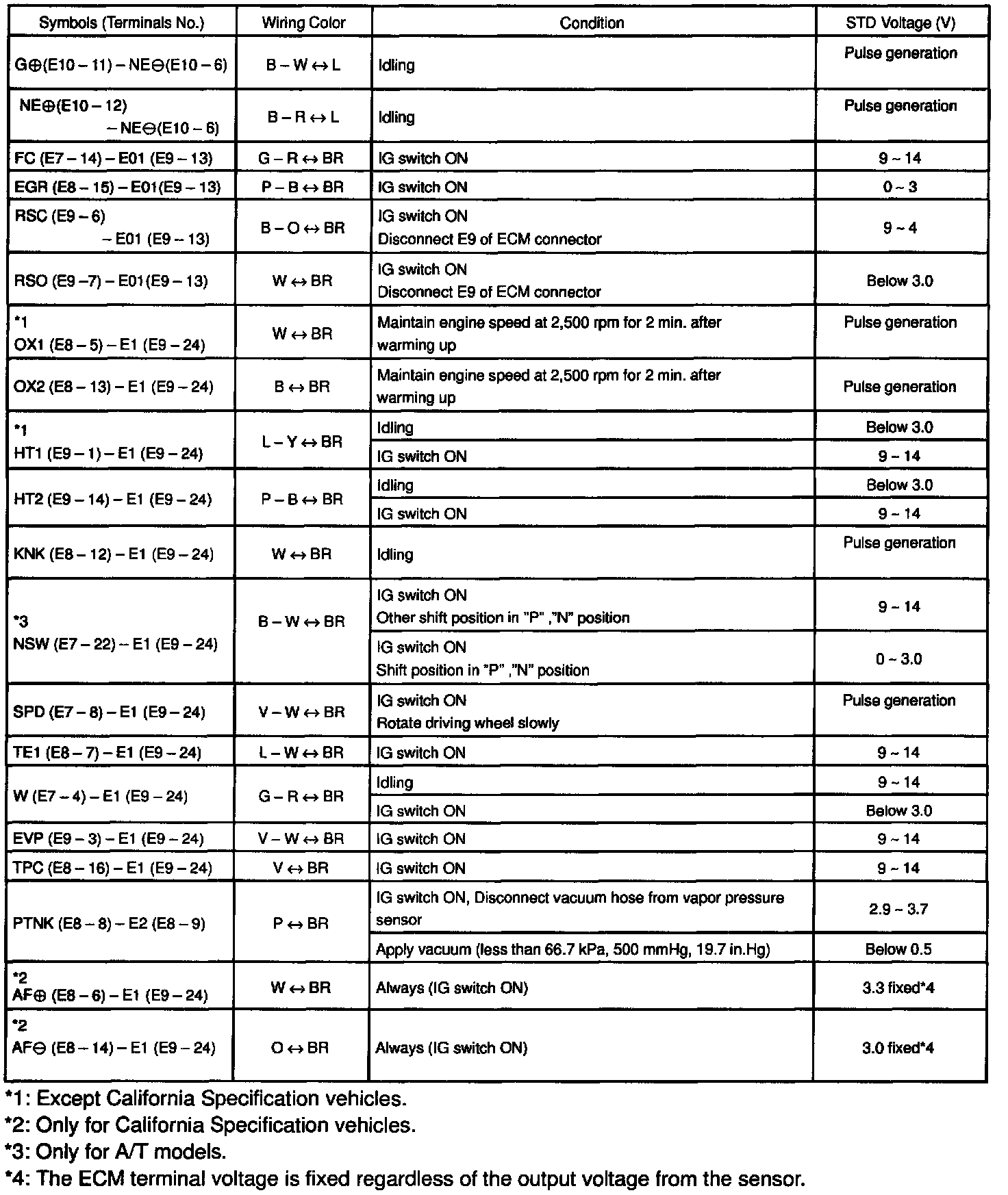 ECM Terminal Values Chart 1 Of 3 W/ Immobilizer System:
