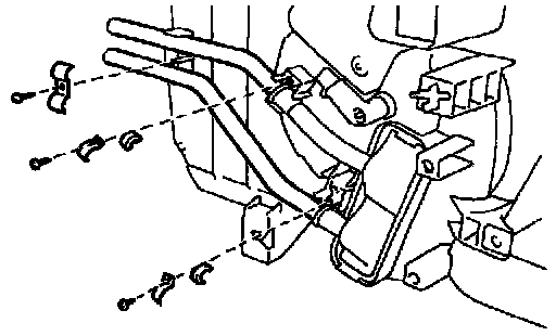 c. Remove the 2 clips and disconnect heater radiator pipes.