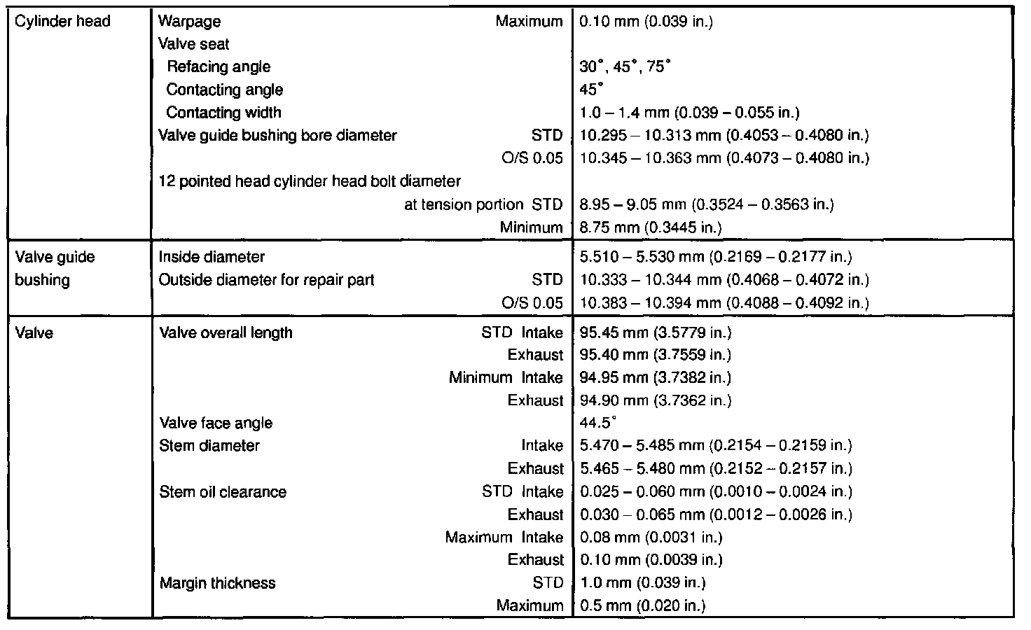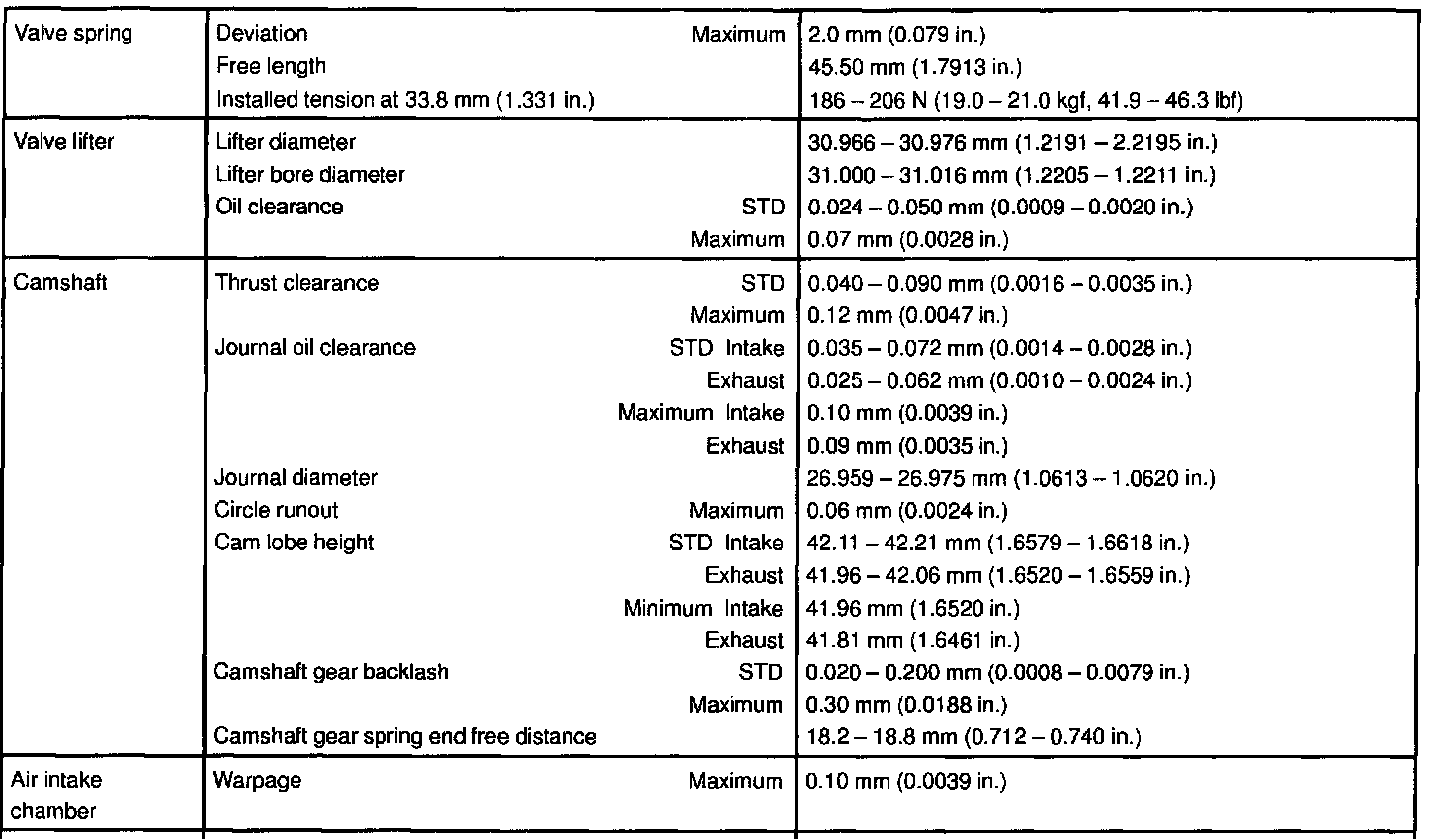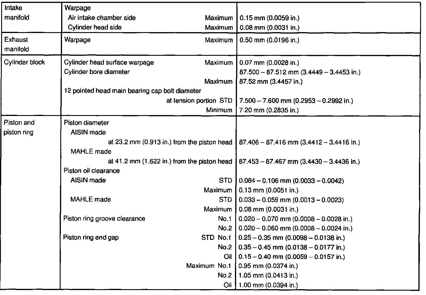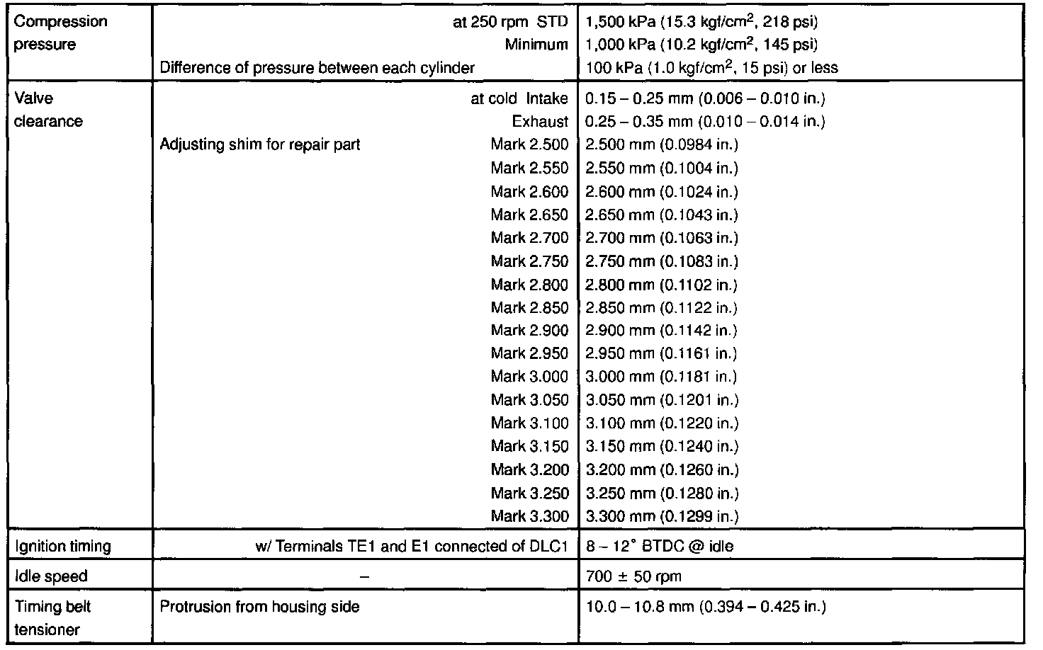 1MZ-FE Engine Mechanical Data: