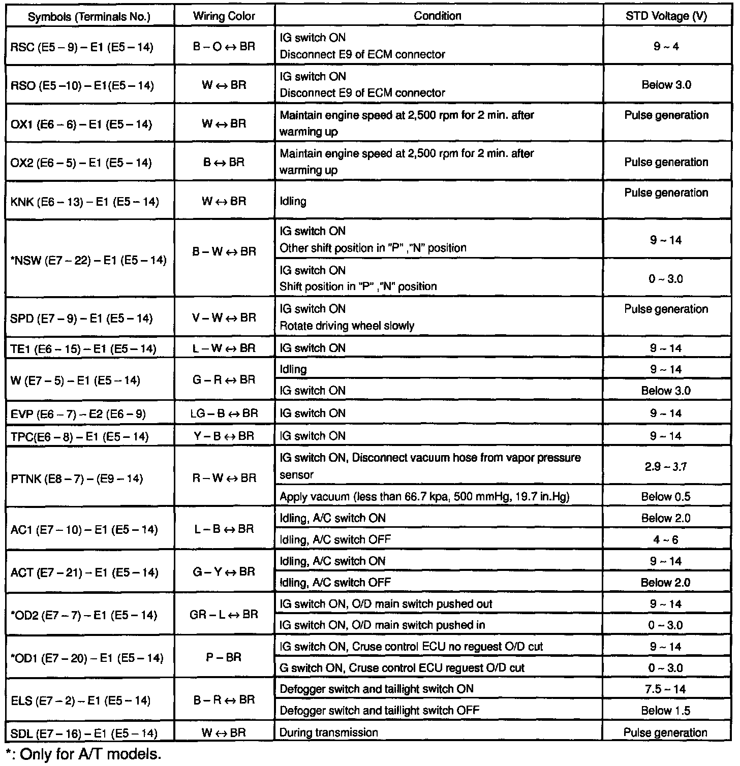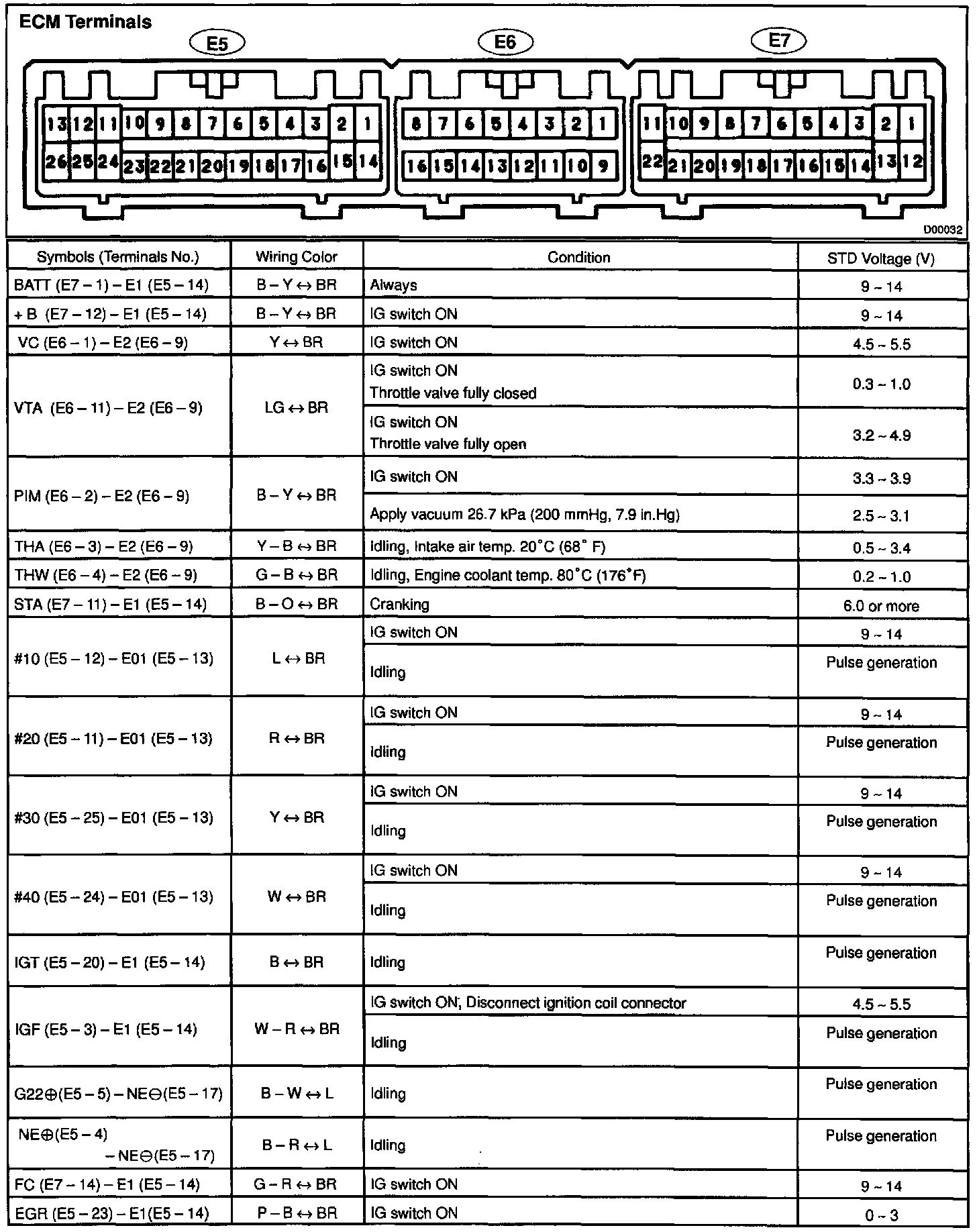 Control Module Pinout Values