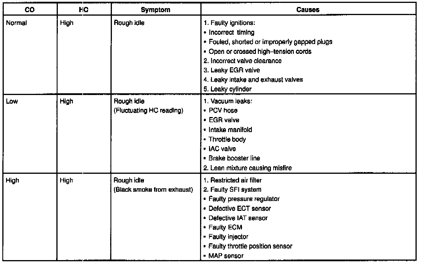 If the CO/HC concentration does not comply with regulations, troubleshoot in the order given.