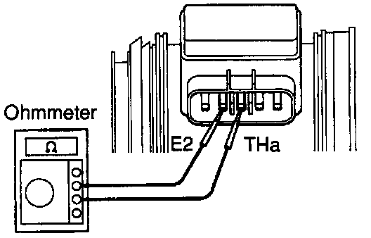 Using an ohmmeter, measure the resistance between terminals THA and E2.