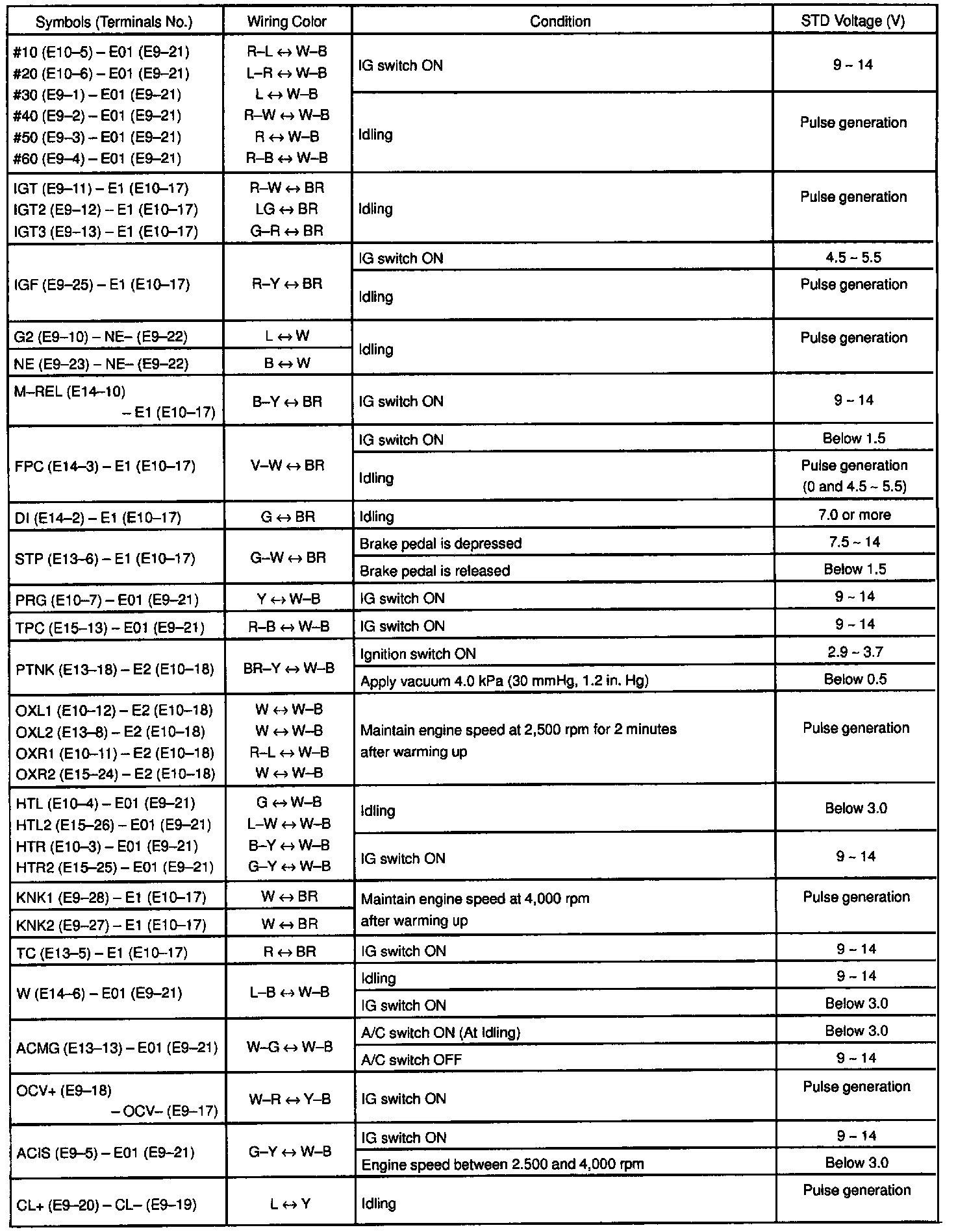 Control Module Pinout Values