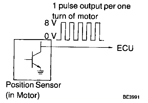 The position sensor senses movement of the seat and send pulse signals to the ECU. The position sensor sends pulse to the ECU in proportion to the amount of seat movement, as shown in the diagram on the left.