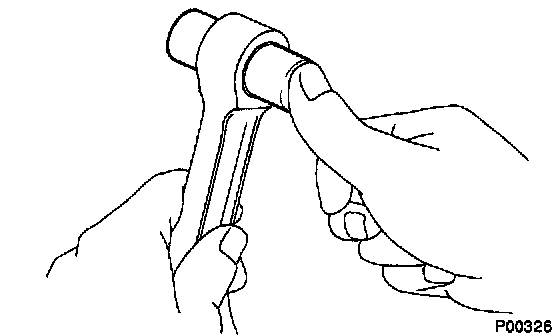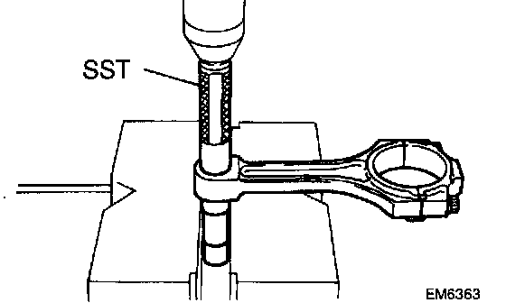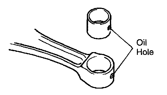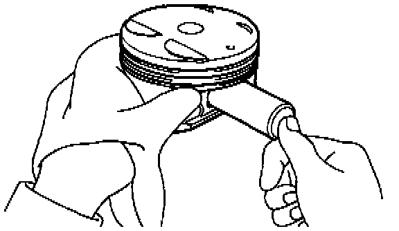 e. Check the piston pin fit at normal room temperature. Coat the piston pin with engine oil, and push it into the connecting rod with your thumb.